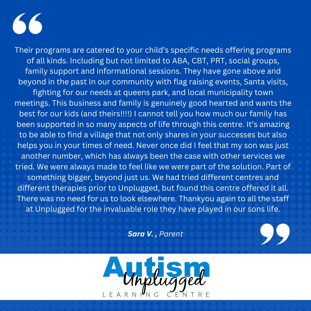 Autism Unplugged Learning Centre are experts in Applied Behaviour Analysis (ABA), Psychological Testing, School Readiness and Child wellbeing and Development who can help identify the abilities as well as the specific needs of your child. They are cutting-edge professionals with experience working with children and adolescents with a variety of challenges including: Autism, ADHD, Learning Disabilities, Behavioral issues and a wide range of Developmental Delays. With a holistic approach and solid foundational understanding of your child's unique characteristics, individualized interventions can then be designed to help your child meet their full potential.